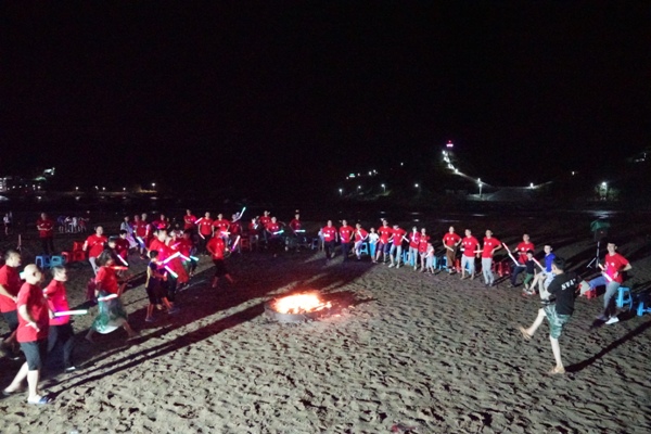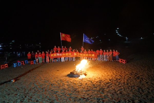 闲暇之余,组织党员和精英们葡萄基地品尝美味葡萄;下午游览美丽月亮湾沙滩,傍晚组织党员和精英们参加月亮湾沙滩篝火晚会,激发了全体人员团队精神和祖国大好河山热爱之情!