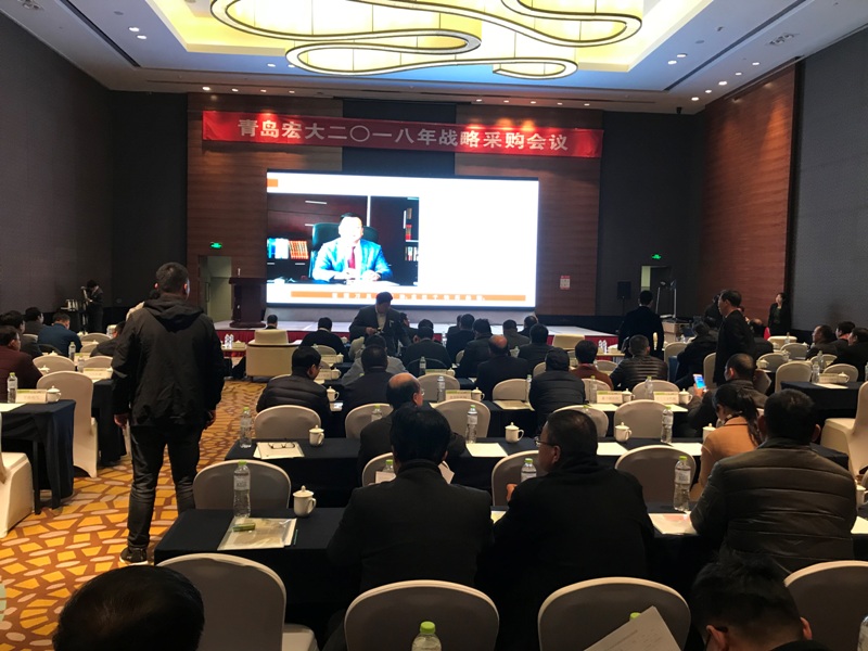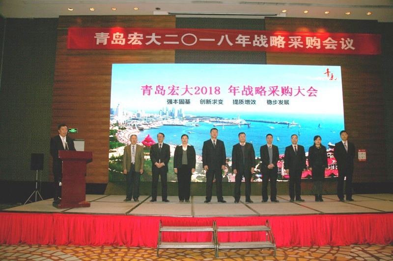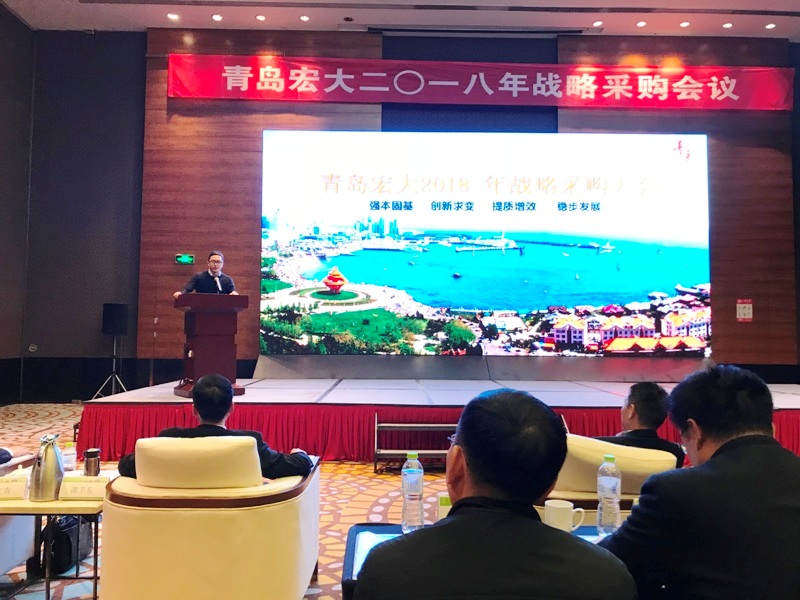 12月18日,青岛宏大纺织机械有限责任公司2018年战略采购会议隆重召开。 98家优秀供应商的125名代表参加了会议,浙江锦峰纺织机械有限公司董事长戴步忠先生和总经理戴羡磊先生应邀参加会议。