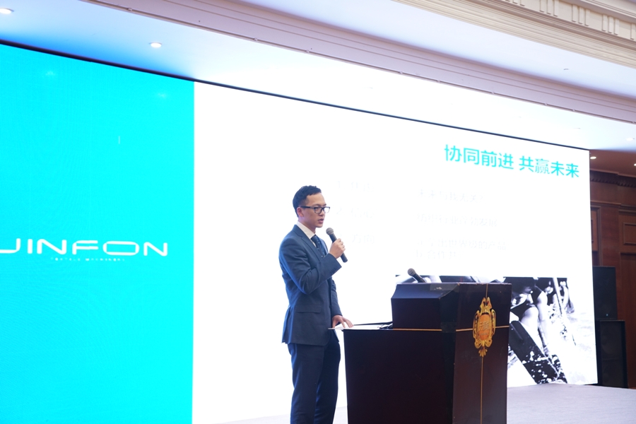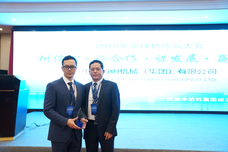 2018年10月20日,中纺机集团2018全球供应商大会在杭州天都城大酒店隆重召开,大会主题“树信心•论合作•谋发展•嬴未来”。浙江锦峰纺织机械有限公司作为中国纺织机械集团公司在全球2300多家供应商中的一员,被评为15家优秀供应商之一,公司总经理戴羡磊并作优秀供应商代表发言。