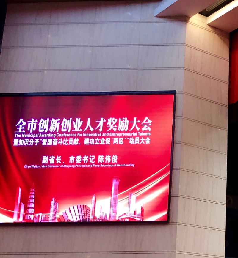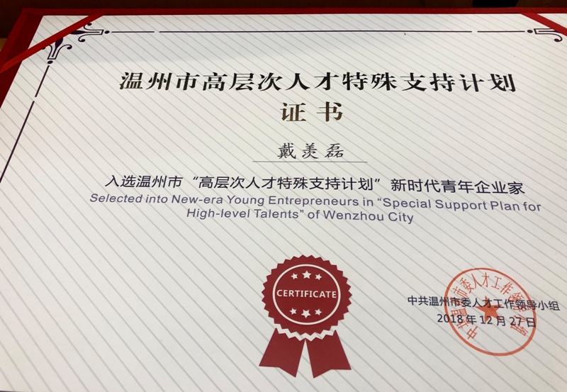 在此次大会上,我公司总经理:戴羡磊先生,应邀参加会议,并荣获温州市“高层次人才特殊支持计划”新时代青年企业家殊荣。