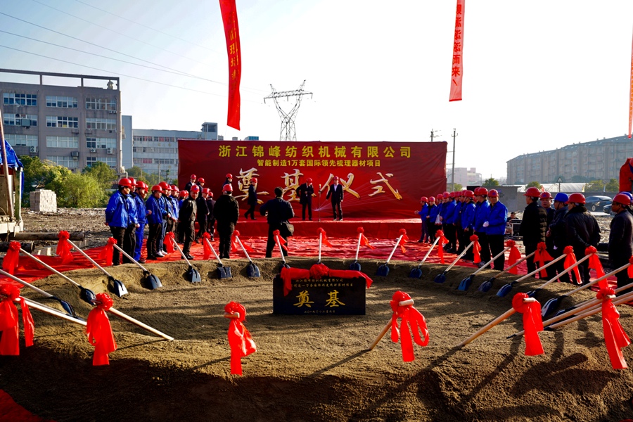2019年12月15日,在这个洋溢着喜庆气息的日子里,我们迎来了浙江锦峰纺织机械有限公司智能制造1万套国际领先梳理器材项目的奠基仪式。